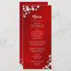 White cherry blossoms on a shimmering red background. With custom bride and groom names, the wedding date and a custom menu text.
