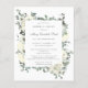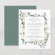 O convite do Elegante Memorial apresenta um quadro botânico de flores brancas e folhas verdes profundas no topo. O nome da pessoa morta está escrito em um texto tradicional. Todo o texto pode ser facilmente editado para criar uma lembrança pessoal.