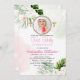 Convite elegante moderno para a primeira comemoração da sua filha. O convite é tão bonito, apresentando um verde com folhas botânicas e design de flores brancas com fundo de aquarela. Também fizemos o convite com personalização extra com a foto da sua filha para fazer com que pareça mais singular e especial. Basta tirar uma foto com o telefone e adicioná-la à estrutura moderna do miçanga. Entre em contato comigo se quiser personalizações extras ou exigências especiais de design. Estou aqui para te servir.