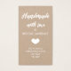 Etiquetas de produto de papel Kraft em tamanho de cartão de visita, onde você pode adicionar seu nome e instruções de lavagem para seu item feito à mão. Feita à mão com amor em um roteiro branco. Um coração bonito separa seu nome com as instruções, que são escritas em branco. A parte de trás apresenta um padrão de ponto chic.