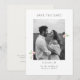 Whimsical and chic. This lovely white & ivory green wedding save the date card features a lovely blush pink watercolor floral accents and couple photo, alongside a contemporary set of fonts. Included at the back is optional text.