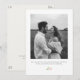 This chic white and ivory wedding save the date card features lovely blush pink watercolor floral accents, couple photo and contemporary set of fonts. The design is a fresh and modern take on the classic wedding save the date. The typographical elements at the back draws attention to the date.