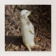 Foto de uma Meerkat branca em pé, ela é branca enquanto tem um pigmento de pele