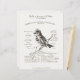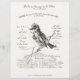 Vintage publicando francês manuscrito para um salão de musique em 1862. Uma bela ilustração desenhada de pássaros, incluída. Pálido fundo de marfim.