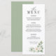 This Elegant White Rose Wedding Menu features modern watercolor florals and lush eucalyptus greenery. Perfect for garden or spring receptions. Easily personalize the menu items and names to match your special day.