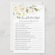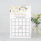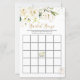 Rosas brancas cremosas em aquarela, flores douradas e folhagens verdes Jogos de Chá de Noiva - Cartão frente e verso - Dois jogos em um! Jogo de Bingo de Chá de Noiva na frente do cartão e Quem Conhece Melhor a Noiva no verso.