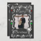 Um quadro de discussão tem um plano de fundo com lindos pergaminhos, estrelas e ornamentos de texto branco, vermelho e verde, e branco que diz "Feliz Natal" na frente e "Que todos os seus dias sejam felizes e brilhantes" na parte de trás. Este belo Cartões de foto de Natal de feriado personalizado tem vários ornamentos de estrelas, e um pássaro em um design de ninho e áreas que você pode adicionar facilmente seus nomes, o ano atual e a foto!