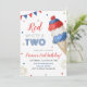 Celebre o seu pequeno e vira dois com o nosso Convite Vermelho, Branco e Dois Aniversário! Perfeito para uma segunda festa de aniversário com um tema patriótico ou de verão, este convite apresenta uma mistura encantadora de cores vermelha, branca e azul. Com elementos divertidos como sorvete e um tema "fogos de artifício pequenos", ele define a palco para uma celebração divertida e memorável. Quer você esteja hospedando uma festa de aniversário de 4 de julho ou simplesmente celebrando um aniversário de verão, este convite certamente agradará seus convidados e tornará a festa de aniversário de seu filho extra especial. Convide amigos e família para se juntarem à diversão com este adorável convite que captura a alegria de fazer dois!