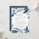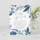 Nosso convite para chá de fraldas do Wild Azure apresenta os detalhes do seu chá de fraldas em chic off-black, enquadrado pela folhagem de aquarela pintada em tons gelados de marinho e azul-céu. Uma nova visão da tendência botânica com folhas de vinho e sotaques elegantes de caligrafia.
