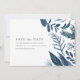 Nosso Wild Azure salve o cartão de data com seus principais detalhes de casamento (nomes, data de casamento, local e site), acentuados pela folhagem de cor d'água de inverno em tons gelados de azul. Um moderno e elegante salvando a design de data que é um minimalista chic assumindo a tendência botânica.