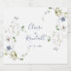 Esta etiqueta de vinho espumante floral da floresta selvagem é perfeita para uma celebração de casamento rústica. Este design apresenta flores da floresta selvagem, brancas e azuis, pintadas manualmente, com folhagem verde.
