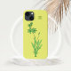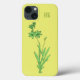 Planta de narciso selvagem em flor de cheio feita em estilo escultural e tons de verde. Quatro floradas e dois botões com folhas e base de bolbos associados. Cores do tempo de borda com um fundo coordenado de amarelo claro.