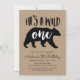 Celebre o primeiro aniversario do seu filho com os nossos convites para a primeira festa de aniversário Selvagem! Os convites à festa de aniversário rústica apresentam a silhueta negra de um urso com "Ele é um selvagem" em tipografia de tendência contra fundo de papel kraft. O reverso dos convites apresenta um design de xadrez de búfalos vermelho e preto. Personalize os convites de primeira festa de aniversário adicionando o nome do seu filho e os detalhes da festa.