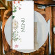 Subtle floral accents frame the menu without overwhelming the design, allowing your carefully curated selections to shine. Perfect for garden weddings, outdoor celebrations, and classic romantic themes, this menu card adds a sophisticated finishing touch to your place settings.