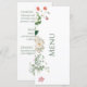 Elevate your reception tablescape with this elegant botanical wedding menu card, featuring delicate watercolor florals and lush greenery in a soft, romantic arrangement. The refined layout highlights each course with graceful serif typography, creating a polished and timeless presentation for your wedding meal.
