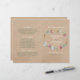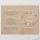 Estes programas dobrados são perfeitos para qualquer casal planejando uma celebração romântica de casamento no país. A design apresenta uma coroa de flores silvestres em uma camada de efeito kraft com texto coordenado por cor. O design simples pode ser personalizado para se adequar ao seu evento especial e será a ordem de serviço perfeita para qualquer festa temática floral, incluindo chás de panela, noivados, chás de casamento, festas de aniversário e muito, muito mais.
