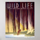 Posters gráficos negros produzidos pela WPA (1936-43) como parte do New Deal da FDR para divulgar o turismo. Os posters do Parque Nacional Vintage parecem excelentes em T-Shirts, posters, cartões de saudação e muito mais. Este design de Vida Selvagem apresenta um bebendo de veados numa piscina.