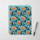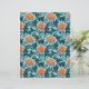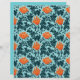 Papel numa vintagem William Morris cor damasco floral de flores e folhas anêmonas - folhas azuis índias profundas e flores em tons de laranja-coral sobre fundo azul-de-raio-claro