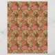 Papel numa vintage William Morris, Art Nouveau, impressão floral de crisântemos estilizados, em bronzeado, ferrugem, e coral, sobre fundo castanho de chocolate profundo