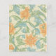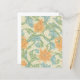 Papel para livros de texto inspirado num belo papel de parede floral de William Morris (caule de Solteiro, 1905). No primeiro plano, algumas grandes flores laranja cercadas por um padrão bobinado de caules e folhas, atrás disso está um padrão de fundo de folhas pequenas pálidas. William Morris no seu melhor: um padrão elaborado, muitas cores (laranja, azul, verde e creme), e ainda um todo harmonioso, tudo se junta.