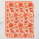 Papel num William Morris, padrão floral, têxtil Jacobeano - elegante, estilizado, crisântemos, girassóis e folhas, em laranja e terracota de coral mole/laranja de ferrugem, sobre fundo branco