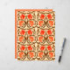 Papel numa vintagem William Morris padrão têxtil estilizado de flores e folhas de pântano estilizadas - flores num gradiente de laranja mandarina média a profunda, acentuado com marrom chocolate, sobre fundo laranja pastel