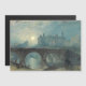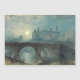 O Castelo de Alnwick. Joseph Mallord William Turner (1775 - 1851). Paisagem noturna em tons azuis escuros. No primeiro plano está um grupo de veados. No meio há uma ponte sobre o rio. A lua está no céu do pôr do sol. Reprodução de famosas imagens de arte no dominio público.