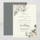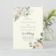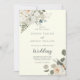 Este floral de inverno no convite de casamento informal de marfim é perfeito para um casamento elegante. O simples design apresenta flores brancas com verde-inverno e folhas de eucalipto, com um sentimento moderno do país.