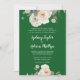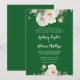 Este floral de inverno no convite formal de casamento verde esmeralda é perfeito para um elegante casamento de Natal. O simples design apresenta flores brancas com verde-inverno e folhas de eucalipto, com um sentimento moderno do país.