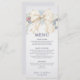 Celebrate the season with a luxurious winter-themed menu inspired by a romantic winter garden. Featuring elegant cream accents, soft floral arrangements in blush pink and dusty blue, and touches of white roses, eucalyptus, and pinecones, this menu embodies the warmth and sophistication of a winter wedding.