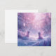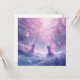 Surrounded by sparkling trees and pastel mist, they share a quiet moment of wonder and warmth.