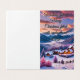 A carta apresenta a paisagem cênica da imagem, transformada em um paraíso de neve. As montanhas são poeiradas com neve branca, e as nuvens dramáticas no céu têm tirado tons suaves de rosa e lavanda, lembrando um pôr do sol mágico do inverno.