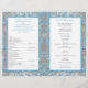 Este elegante e festivo programa de casamento dobra-em-meia de 8,5"x11" com uma cinza prateada e fundo branco com flocos de neve brancos e uma cor damasco floral azul de gelo tem uma fita azul de aço IMPRESSA e um arco com um par de joias de diamante e a brilhante azul FAUX juntou corações que combinam com os convites de casamento de inverno ou Natal mostrados abaixo. Ele foi projetado para ser dobrado pelo centro. Todo o texto é personalizável. ****POR FAVOR, OBSERVE que o papel de mais alto é um estoque de cartão e não se dobra bem. Envie um e-mail para niteowlstudio@gmail.com se precisar de assistência para a personalização ou se tiver perguntas ou solicitações.