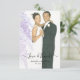 Lavanda Wisteria Blooms cartões de agradecimentos de Casamento apresenta um motif floral delicadamente em cascata que elegantemente enquadra sua foto e texto. Personalize esta placa simples com sua própria foto, cores de texto, fontes e texto para se adequar ao seu evento.