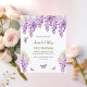 Um fundo branco elegante, decorado com flores de wisteria e borboletas de cor lavanda. Personalize e adicione um nome e detalhes da parte. Traseiro: lavanda colorido 1 folha = 1 convite impresso de borda a borda.