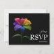 A refined and contemporary RSVP card from the Technicolor Love collection, designed in a clean horizontal format that feels modern, spacious, and easy for guests to complete. The signature rainbow lily adds a vibrant burst of colour along one edge, creating a cohesive look that pairs beautifully with the rest of your suite.