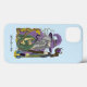 Um mago todo em roxo segurando um funcionarios que tem uma bola de cristal roxo. Um pequeno dragão verde, nó celta funciona, vela e uma borda de outono deixa tudo num pano de fundo azul claro