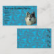 Lobo Neve com um fundo de Spruce Bough. A parte de trás do cartão tem as impressões de Wolf Paw ao longo do lado. Este cartão está em azul, a cor de fundo pode ser alterada.