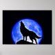 Wolf Howling Blue Full Moon Night Poster
