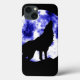 Wolf Howling em Lua - Trabalhos de arte de animais e vida selvagem com tons azuis