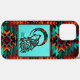 Esta é uma única capas de iphone de células de lobo tribal do sudoeste. Ele apresenta um lobo tribal Howling na lua em um fundo de turquesa... cercado por uma borda sudoeste de Turquesa, Laranja e Preto! Design De Arte Original Pelo Artista Kerry Miller.