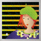 Arte digital original com uma mulher vestindo uma boina verde-amarelada. Adicione um quadro para uma aparência de designer. Selecione entre 4 designs. Combine 2 ou mais para criar uma tela impressionante.