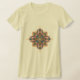 This tee features a beautiful geometric mandala in colors of peach, yellow and blue.