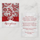 Este elegante cartão de recepção de casamento floral de cinza vermelha e prateada FAUX brilhante tem um fundo de vários flocos de neve brancos e uma fita vermelha IMPRESSA e arco com um par de joia de diamante e brilho FAUX uniram corações que combinam com o convite de casamento mostrado abaixo. Você também pode personalizá-lo para ser um cartão de informações ou instruções, um cartão de registro de presente, um cartão de poço de desejo ou um cartão de caridade, alterando o texto de acordo. Entre em contato com niteowlstudio@gmail.com se precisar de alterações.