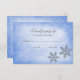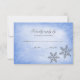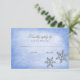 Um cartão de convite RSVP para o na moda Winter temed. Apresentando ilustrações falsas do falso falso falso falso falso falso falso/floco de neve brilhante em um fundo azul. Perfeito para casamentos, doces 16 festas de aniversário e muito mais!