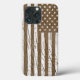 Forte madeira de grunge, design de bandeira americana para proteger o seu iPhone. Esta design apresenta a bandeira dos Estados Unidos da América (EUA) em estrelas e listras em branco que mostram o grão de madeira e textura de rachadura abaixo.