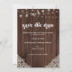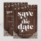 As luzes de corda de madeira russa acenam, salve os cartões de data apresentando um fundo de madeira rústica com cordas de luz piscando e um local de estilo de safra nos cantos inferiores. A palavra casamento é lançada na tipografia rústica e retrógrada ocidental, fazer este é o design perfeito para o seu casamento bô ou country. Entre em contato conosco em cedarandstring@gmail.com se precisar de assistência com o design ou produtos correspondentes.
