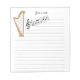 Uma ilustração de uma harpa de madeira com notas musicais.