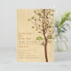 Convite rústico e encantador para um verão ou um evento ao ar livre. Cores mostradas: Faixa de castanho claro para castanho escuro e sábio claro para verde-oliva. O fundo do padrão Faux Woodgrain e a pequena Imagem de Pássaro de Amor continuam atrás (impressão de informações adicionais de RSVP ou viagem no verso).