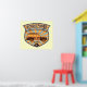 Cidade surf, aqui vamos nós! Legal design com Woodie ( ou Woody ) - o icônico vagão de surf revestido com pano de madeira. Atingido, vintage. O autocolante do vagão. Impressão de vagão lenhoso.